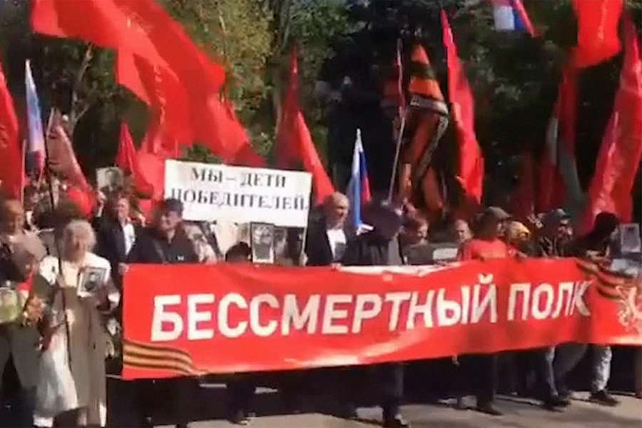 Перед началом шествия местные артисты выступили с песнями военных лет. После этого представители местной администрации вместе с жителями города возложили цветы к Вечному огню. Военнослужащие РФ развернули на аллее полевую кухню для желающих, а также организовали праздничный концерт.