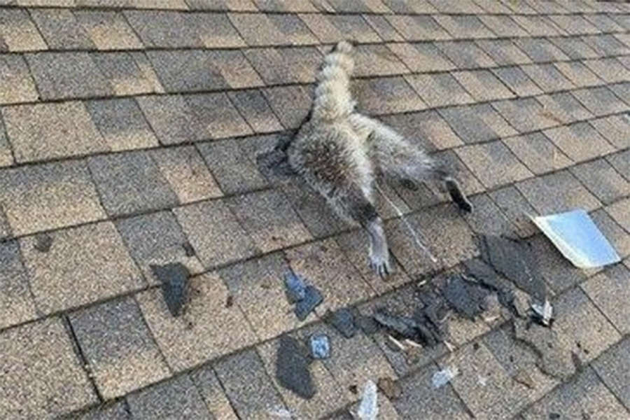В калифорнийском приюте для животных Санта-Круз сообщили, что им позвонил местный житель и рассказал, что дикий енот прогрыз дыру в крыше его дома и застрял, пытаясь пролезть через отверстие.