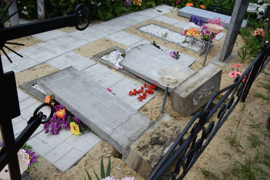 На фото, опубликованных в соцсети, могильные плиты и кресты вырваны из земли.