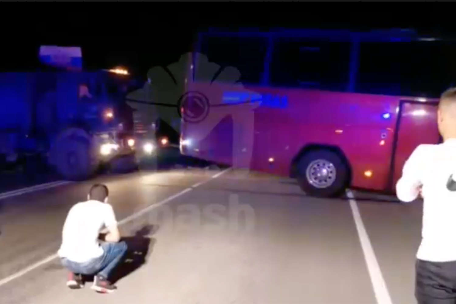 На обратном пути из Херсона автобус, в котором находилась группа «Земляне», попал в ДТП, сообщается в Telegram-канале «Mash на Донбассе».