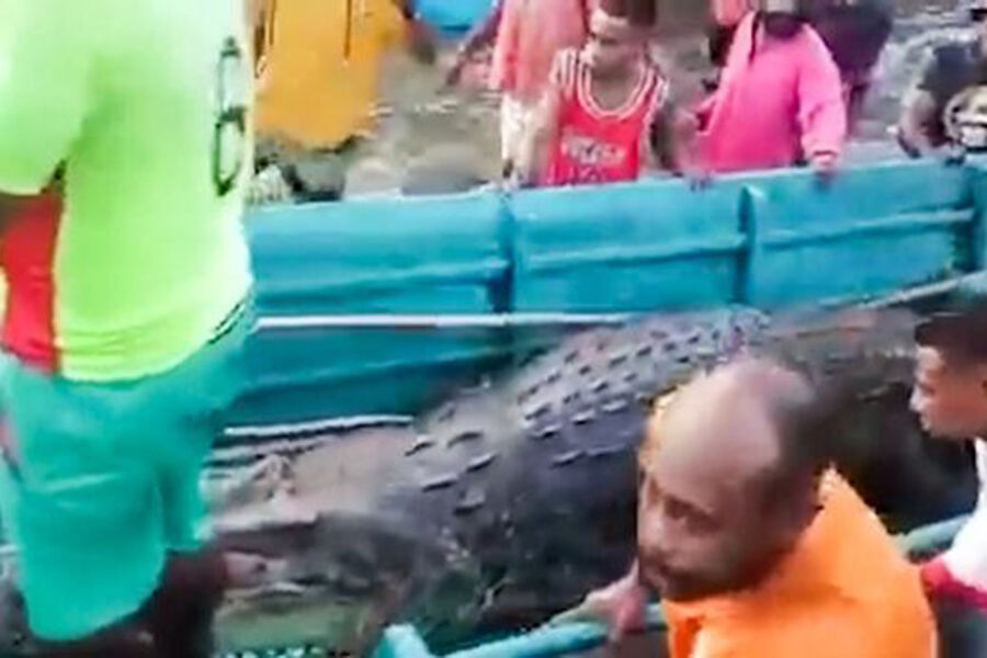 Добровольцы и сотрудники полиции поймали четырехметрового крокодила после того, как он съел строителя Йенимана Бернарда, утащив его под воду. Живот рептилии был сильно вздутым, что дало понять людям — внутри действительно лежит человек.