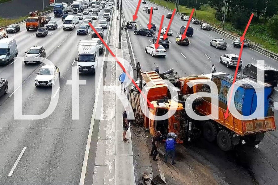 ДТП произошло в районе пересечения с улицей Паустовского. Согласно снимку, который опубликовало ведомство, столкнулись не менее шести легковых автомобилей, а также два грузовика, один из которых в результате инцидента опрокинулся.