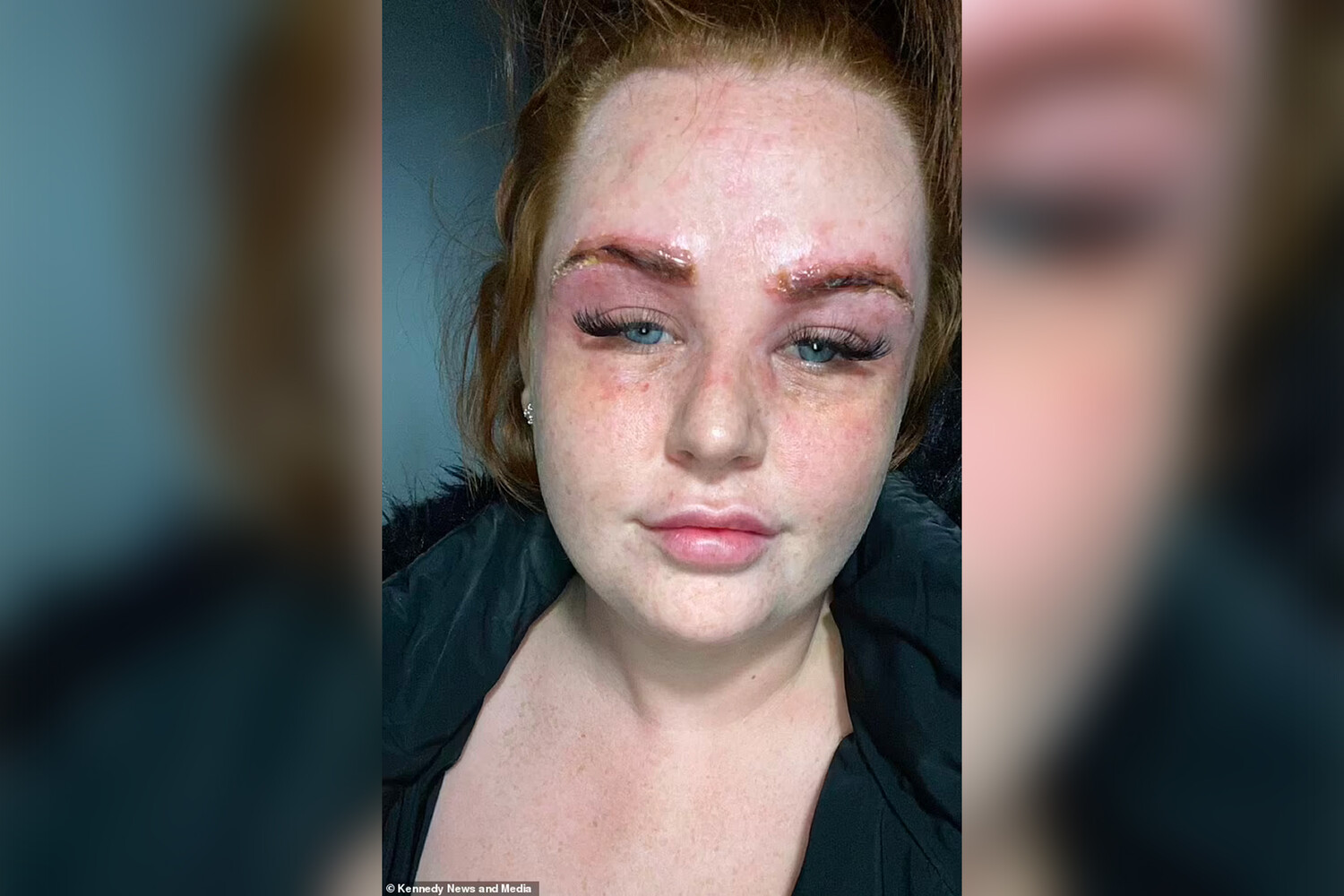 Женщина сделала коррекцию бровей воском с последующим окрашиванием. Утром на следующий день она почувствовала неприятные ощущения и зуд в области лба. В зеркале британка увидела сильный отек и покраснение. В течении дня кожа покрылась волдырями и стала гноиться.