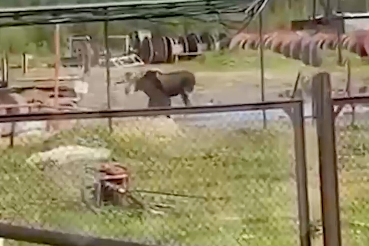 На кадрах, опубликованных очевидцами в интернете, видно, что медведь пытается атаковать лося, а представитель оленевых отбивается. Причем оба зверя находятся на территории вахтового поселка, за забором. Во время боя лось пытался победить противника с помощью рогов, а медведь — с помощью когтей.