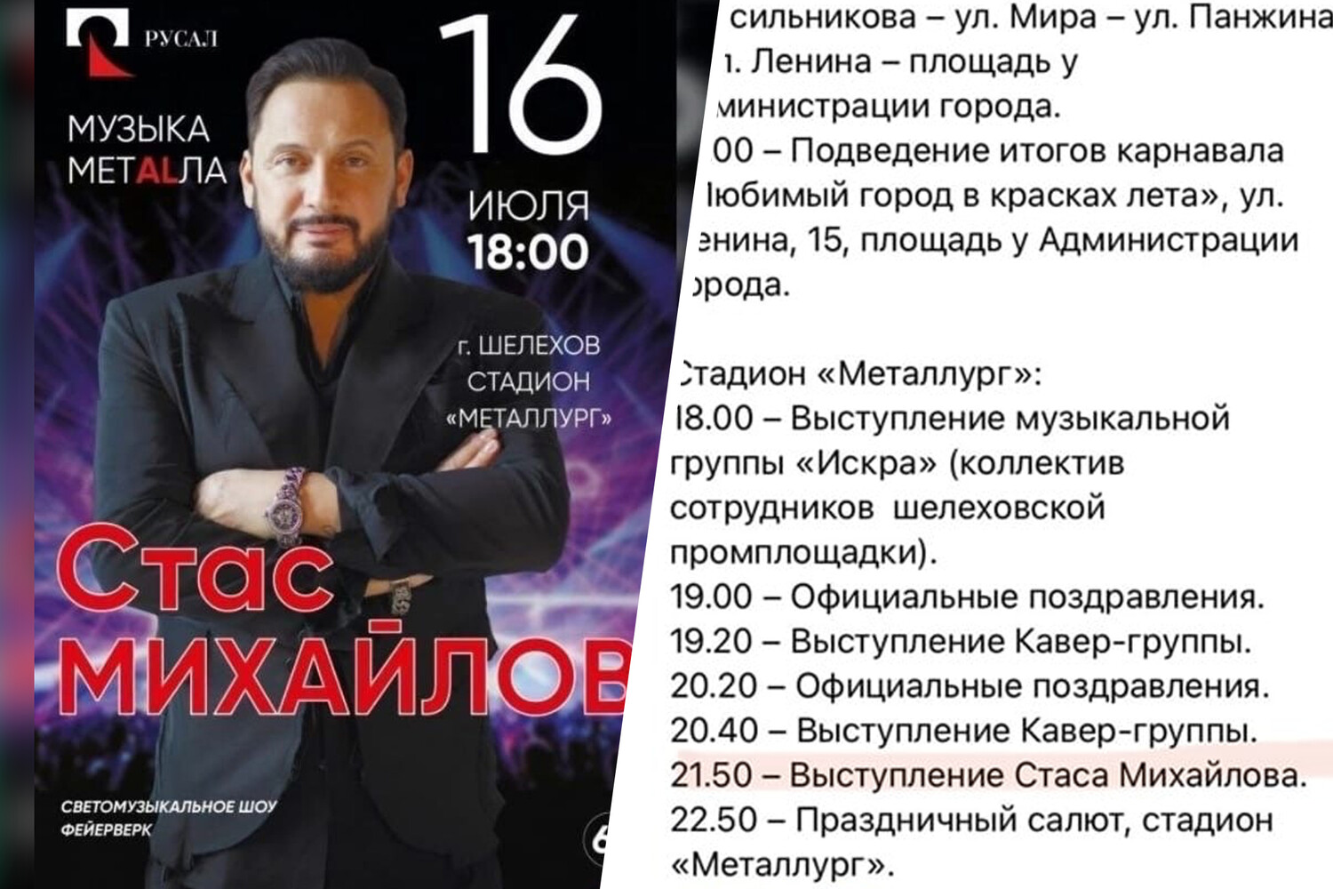 16 июля 2022 года на Дне металлурга в городе Шелехове Иркутской области выступил певец Стас Михайлов, а в соцсетях распространилось видео, на котором зрители массово покидают площадку прямо во время его выступления. Мэр Шелехова Сергей Липин пояснил «Газете.Ru», что на афишах, которые подготовила пригласившая певца компания «Русал», было написано, что концерт состоится в 18.00, но на самом деле выступление началось почти в 22 часа, поэтому многим жителям было тяжело ждать столько времени, а потом слушать сам концерт.
