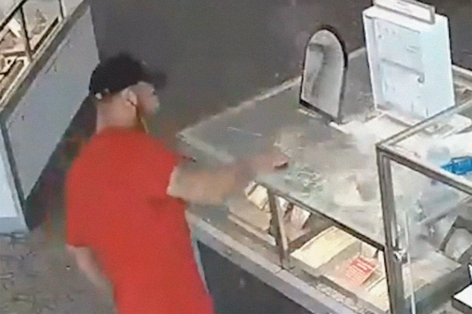 Ситуацией воспользовалась сотрудница магазина. Видя, что вор замешкался, она побежала на него с палкой в руках, заставив мужчину выбежать из ювелирного, сесть в машину и уехать. Позже местные полицейские опубликовали кадры с места события с просьбой помочь опознать преступника.