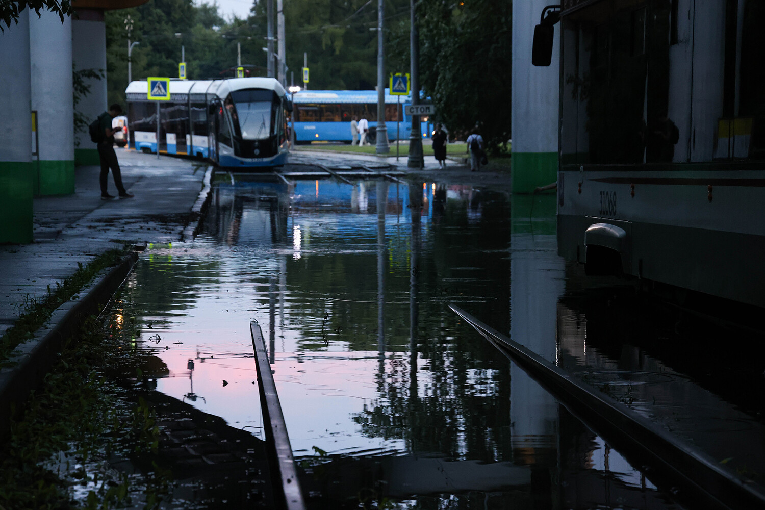Власти сообщили, что на улицах города дежурят 300 бригад Мосводостока и около 290 единиц техники, а также заверили, что водосточная сеть справляется с выпавшим объемом осадков.