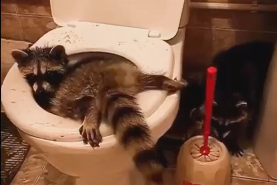 По данным источника, еноты залезли в отель ночью 4 августа 2022 года. Устроивших беспорядок в ванной комнате енотов застал хозяин гостиницы, который успел снять животных на камеру телефона. На ролике видно, как два енота купаются в унитазе, а пара других пытается залезть на раковину.