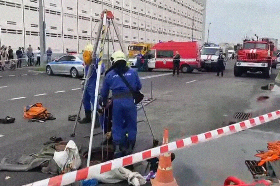 В прокуратуре Москвы ранее сообщили, что трое из 12 рабочих не смогли выбраться на поверхность во время выполнения очистных работ в канализационном коллекторе на Краснодарской улице.