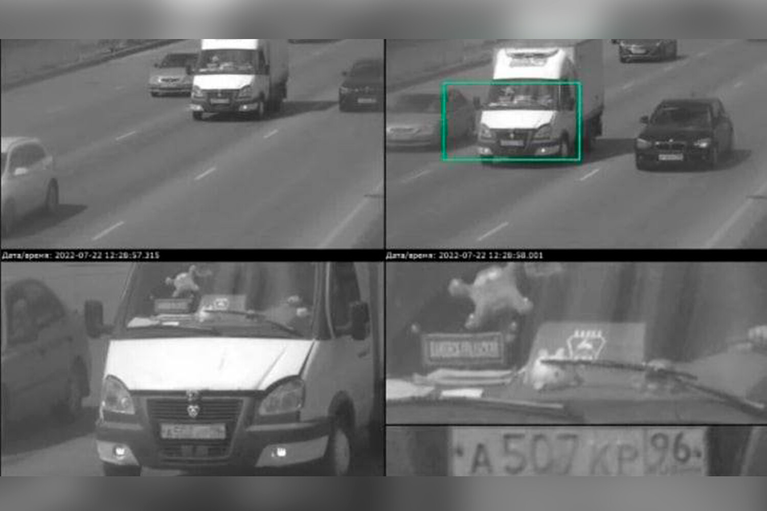 Мужчина за рулем «Газели» ехал по дублеру Сибирского тракта. В это время камера зафиксировала на его лобовом стекле плюшевого кота, которого приняла за пассажира. Так как игрушка не была пристегнута ремнем безопасности, водителю автоматически был выписан штраф на тысячу рублей.