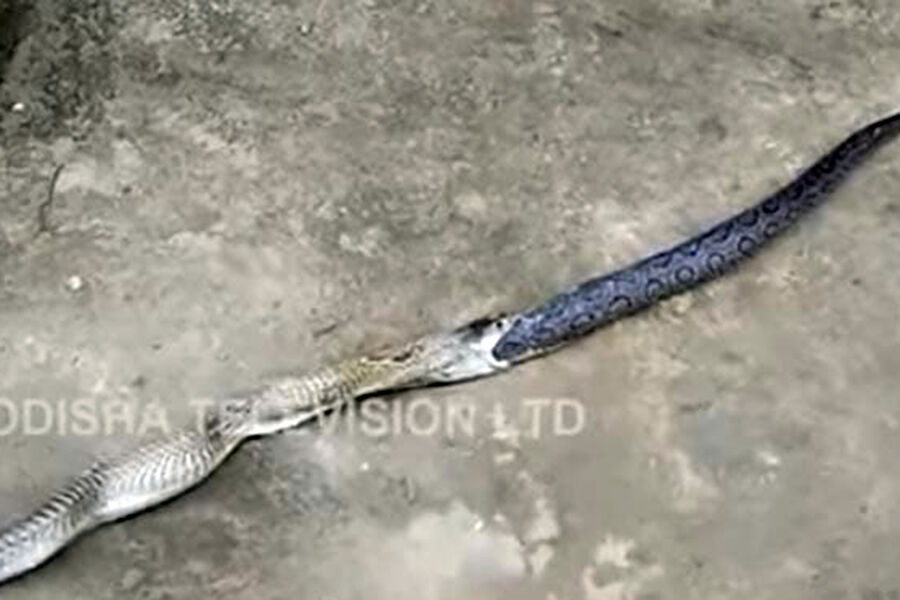 В индийском городе Банки увидели двухметровую кобру, изо рта которой выходит живая цепочная гадюка. Местные жители вызвали змеелова, который помог переместить змей в естественную среду обитания. Специалист заметил, что, вероятнее всего, цепочная гадюка не выживет, поскольку яд кобры может ее убить.