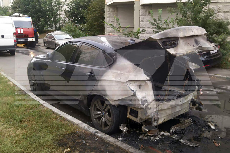 Как отмечается, BMW X6 Секретарева стояла во дворе дома на Ленинградском шоссе и там же загорелась. Больше всего пострадала задняя часть авто — багажник полностью выгорел.