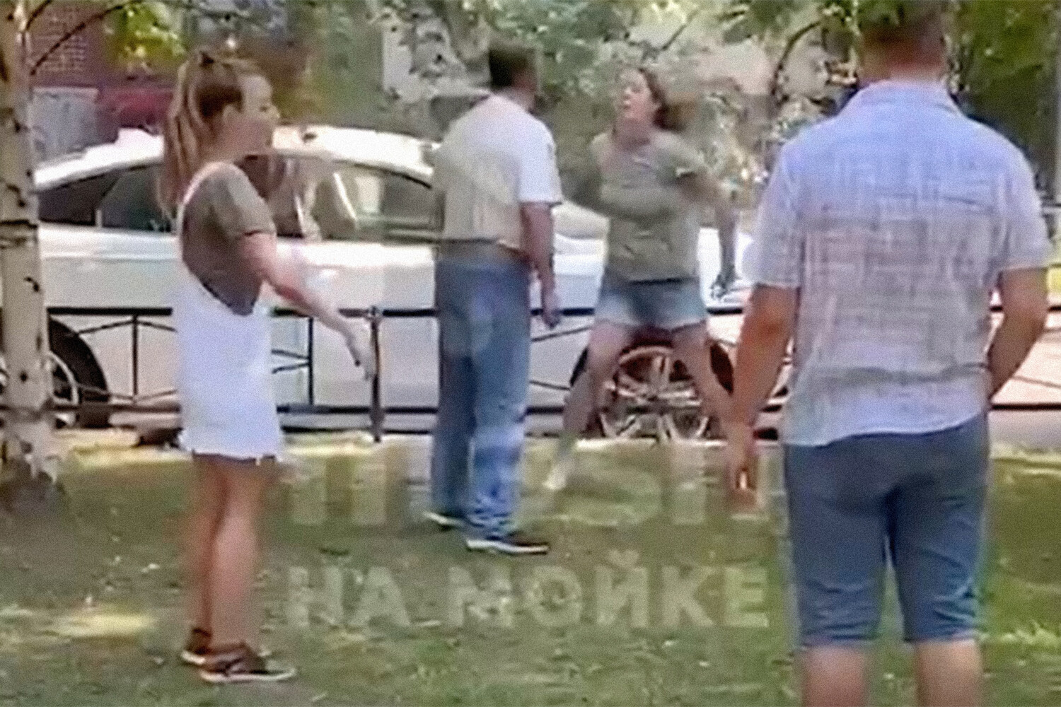 На кадрах видно, что собака уже не двигается, но девушка продолжает бить ее тело об дерево и изгородь и ругаться с пытающимися оставить ее людьми. За происходящим наблюдали дети, которые в это время гуляли на детской площадке.