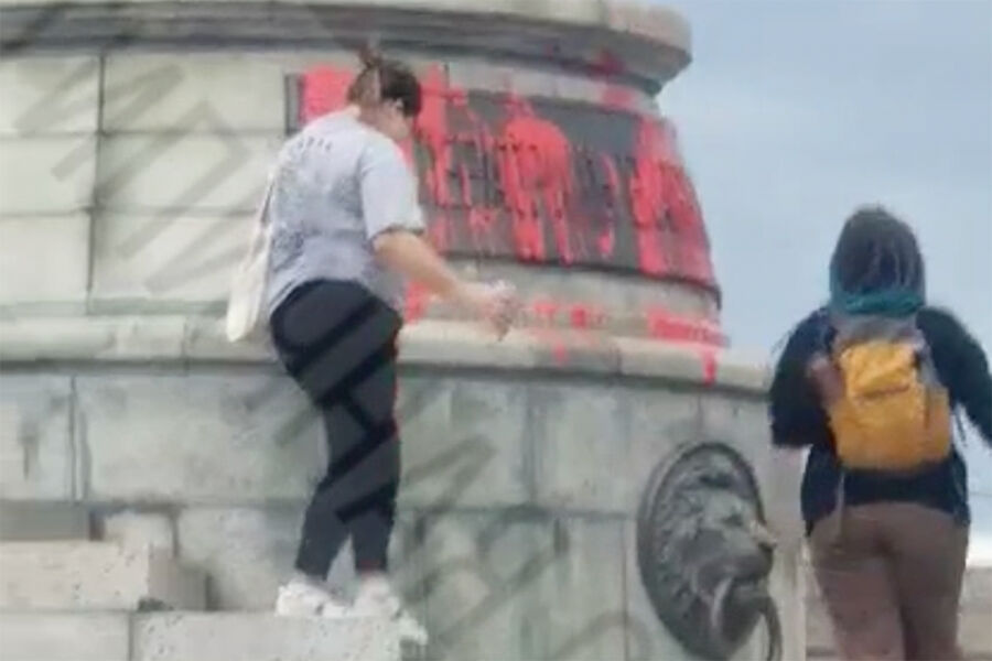 В Одессе две девушки облили краской памятник основателям города. Видео происшествия было опубликовано в Telegram-канале Типичная Одесса.