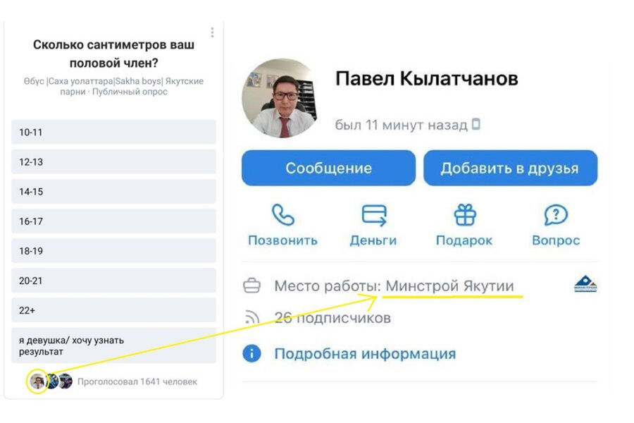 Министр строительства Якутии Павел Кылатчанов заявил, что неизвестные взломали его аккаунт в одной из социальных сетей и приняли участие в опросе о размере полового члена. Об этом сообщает издание «Подъем».