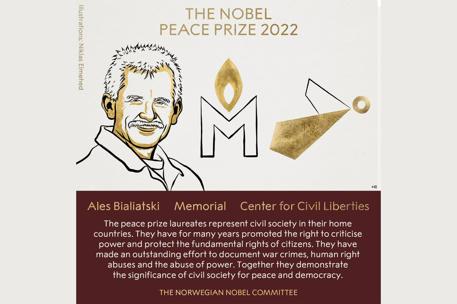 Нобелевскую премию мира присудили «Мемориалу»*, Центру гражданских свобод и Беляцкому