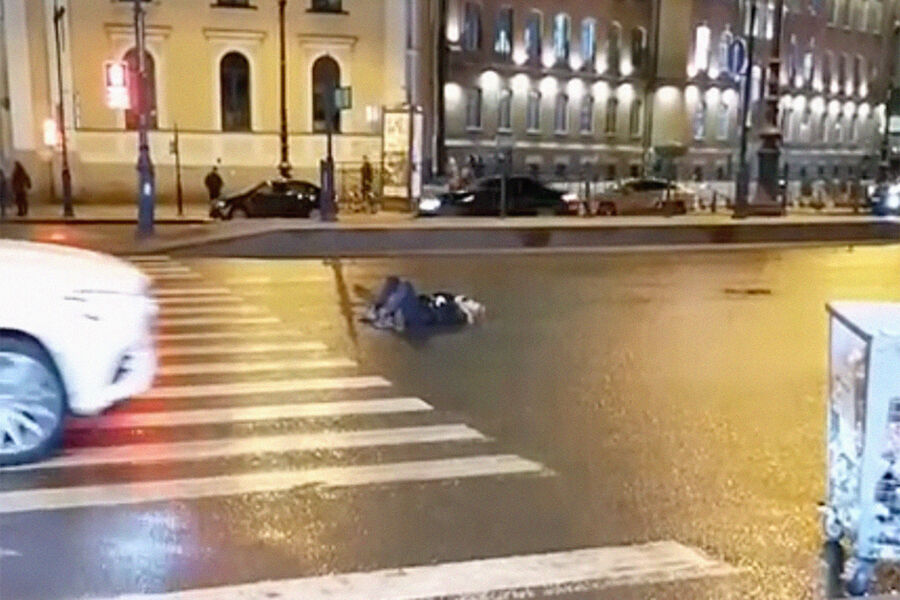 На кадрах видеонаблюдения видно, как девушка лежит на спине и поднимает ноги кверху. По дороге едет такси, водителем которого оказался 26-летний молодой человек, и на скорости наезжает на девушку. После аварии таксист сразу же затормозил и вышел из машины.