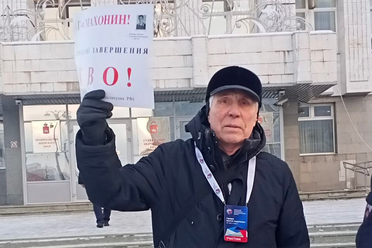 В Перми полиция задержала 77-летнего пенсионера, который вышел к зданию администрации региона с плакатом с требованием завершить специальную военную операцию. Об этом сообщает портал 59.RU.