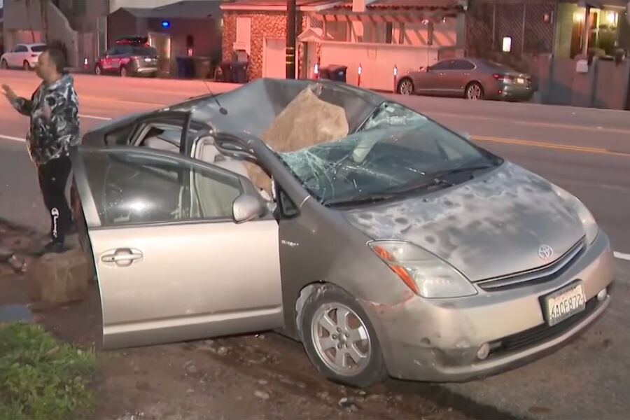 Мужчина из Калифорнии чудом выжил после того, как на его машину упал огромный валун, пишет UPI. За несколько секунд до этого американец вышел из автомобиля.