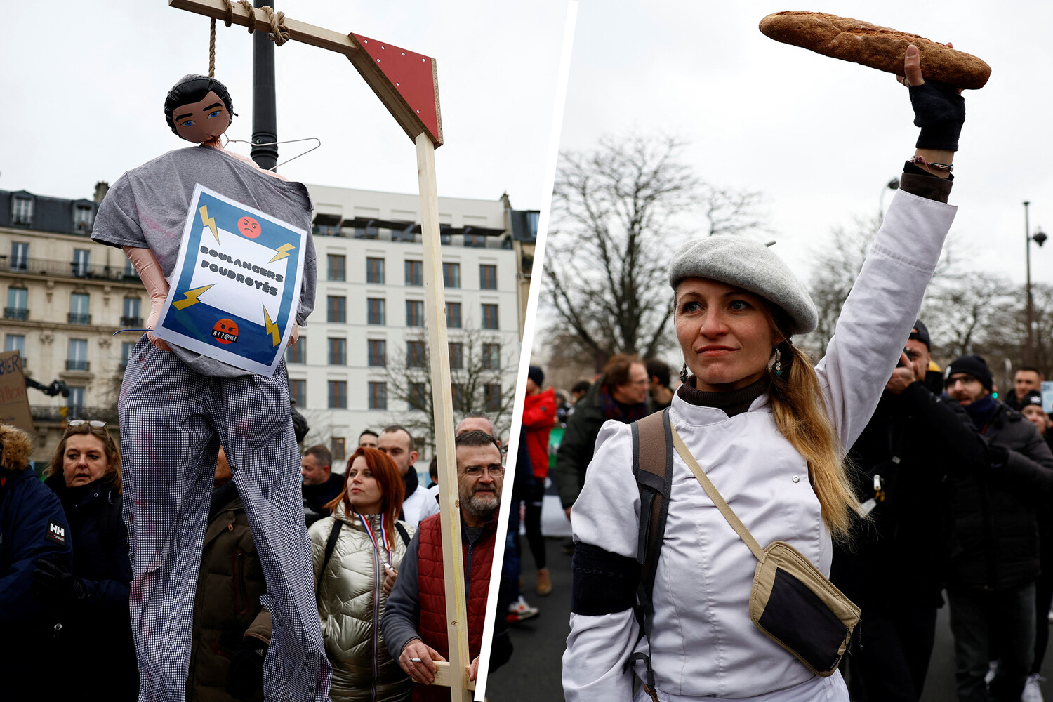 «[Президент Франции Эммануэль] Макрон, реагируй! Это конец для всех пекарей!», «Справедливые тарифы для ремесленников!», «Мы, пекари, хотим продолжать работать!» — гласят надписи на транспарантах протестующих.