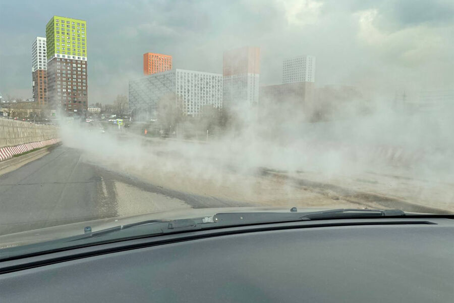 В Новой Москве проезжая часть залита горячей водой, от которой в воздух поднимаются клубы пара. Видео от жителей ЖК «Татьянин Парк» появилось в открытом чате в Telegram.