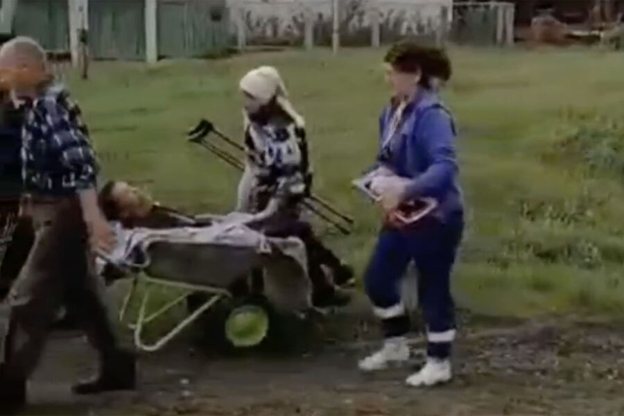 В итоге мужчину, которому понадобилась скорая медицинская помощь, фельдшерам пришлось везти до своего автомобиля на садовой тачке.