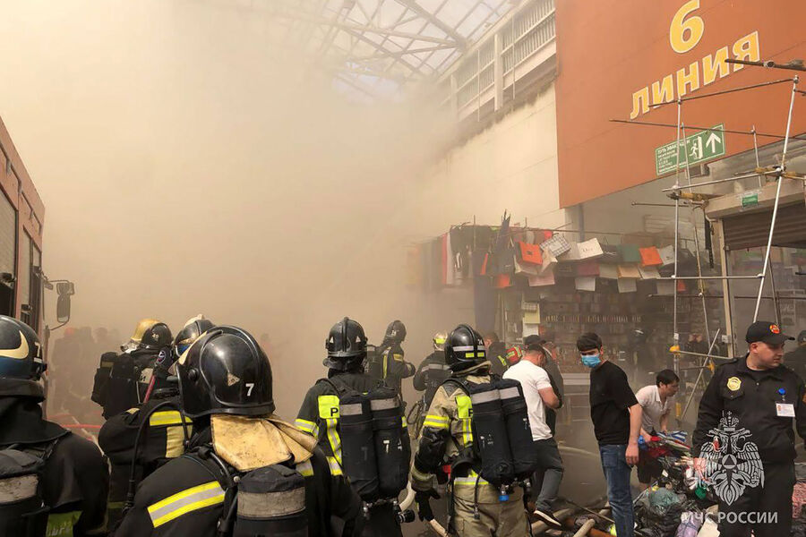 В ГУ МЧС РФ по Москве заявили о локализации пожара на рынке «Садовод» на площади 30 кв. м