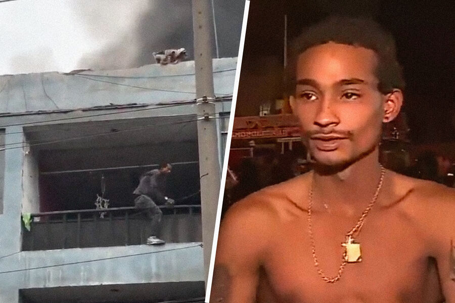 Мужчина скидывал собак с крыши на полотно, которые растянули внизу неравнодушные люди. Себастьян вспоминает, что едва сам не стал жертвой пожара.