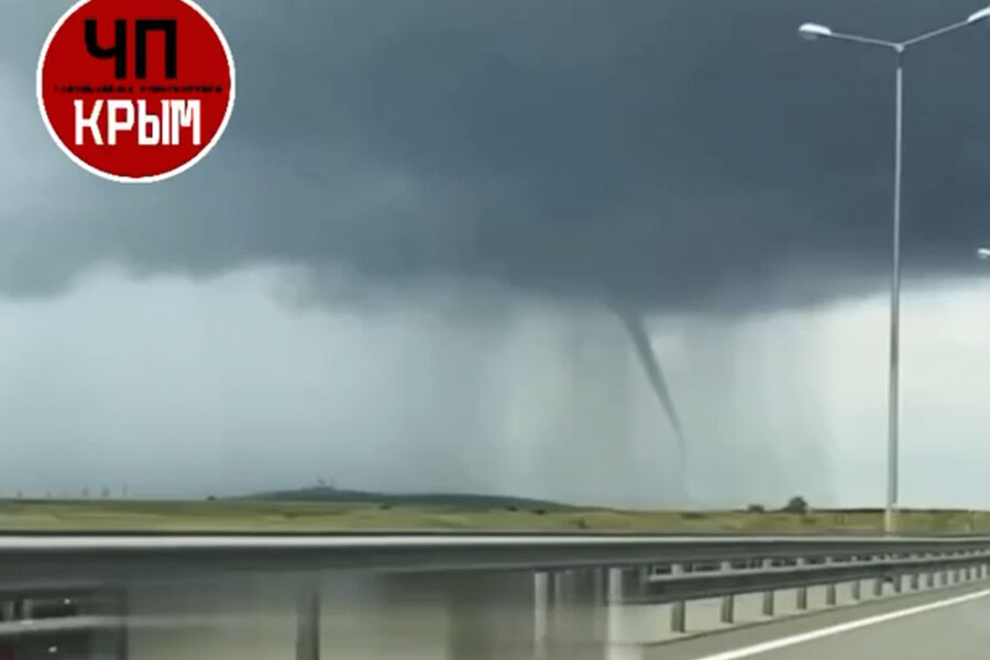 У Крымского моста автомобилисты сняли на видео смерч. Видеозапись одного из пассажиров опубликовал Telegram-канал «ЧП Крым».