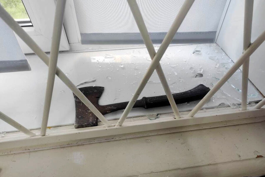 Вечером 12 июля в Выборге местный житель пришел с топором к дому на Приморском шоссе. Он разбил стекла у автомобиля Renault Symbol, принадлежащего его знакомой, а затем попытался попасть холодным оружием в окно квартиры на третьем этаже, в которой проживает женщина. Однако не добросил его до цели и лишь разбил окно детского развивающего центра, расположенного на первом этаже.