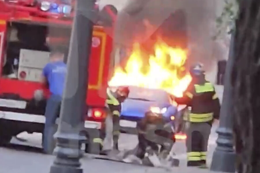 Lamborghini полыхает в центре Москвы на Хилковом переулке
