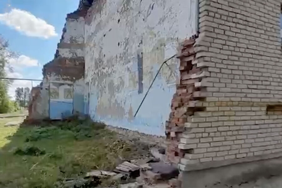 В новокашировской школе учатся 130 детей. Telegram-канал опубликовал видео, на котором снято здание школы — часть стен разрушена, кирпичи осыпаются, а из кровли и крыльца растут деревья.