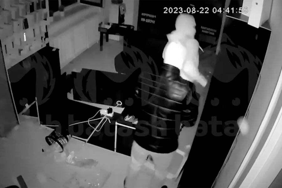 Инцидент произошел в одном из магазинов на улице 50 лет СССР в Уфе. Грабители разбили стеклянную дверь в магазин и направились к сейфу. На записи видно, как двое преступников пытаются сдвинуть с места сейф, но у них ничего не выходит. Так и не добившись результатов, мужчины побили в магазине витрины, снесли стойку продавца и забрали с полок коробки из-под техники, после чего скрылись.
