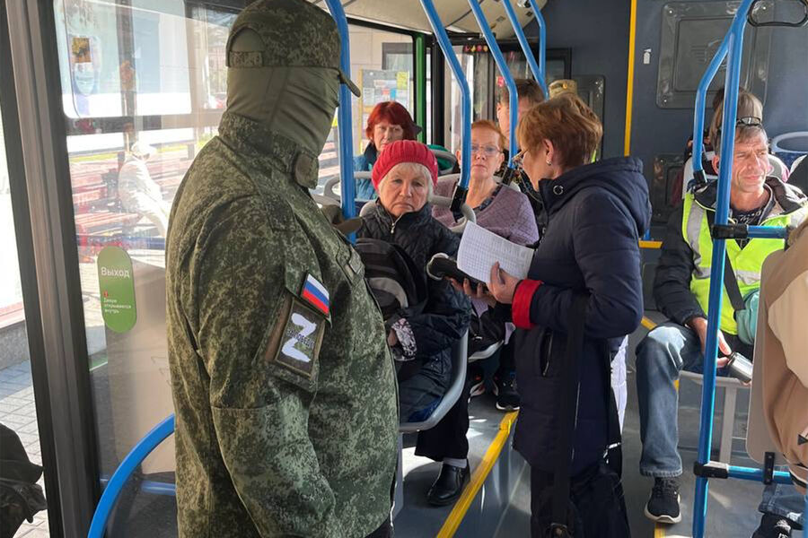 В Челябинске дружинники в балаклавах и с шевронами с буквой Z ловят безбилетников. Об этом сообщается в Telegram-канале «Автобусный парк Челябинска».