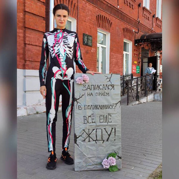 По словам активистки, ситуация в городе такова, что пациенты вынуждены подолгу ждать своей очереди только для того, чтобы записаться на прием к интересующему их специалисту. Акционистка уверена, что эта тенденция может привести к трагедии в критической ситуации.