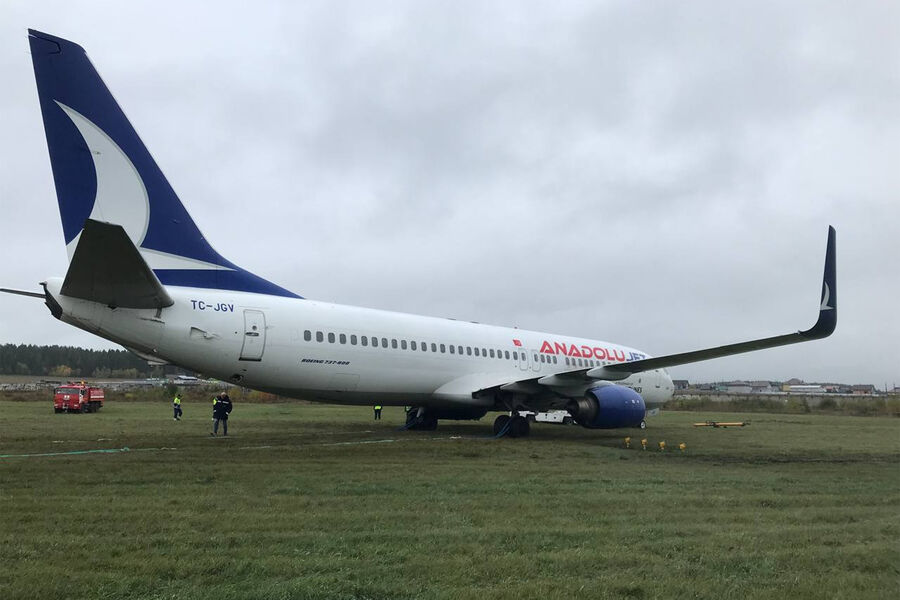 Пилот Boeing-737-800 не справился с управлением в пермском аэропорту Большое Савино, и самолет выкатился за пределы взлетно-посадочной полосы, сообщает Telegram-канал Shot.