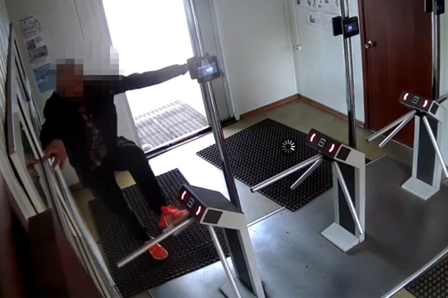 Инцидент произошел в поселке Малаховка. На видео с камер наблюдения заметно, как россиянин зашел в школу и пытается пройти через турникеты. В холле на гостя обратил внимание охранник, после чего мужчина стал угрожать ему ножом.