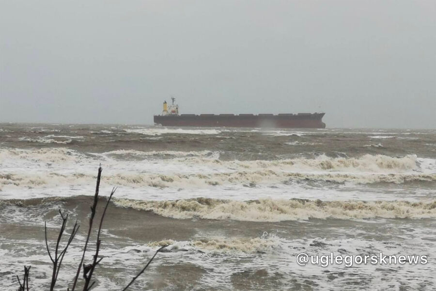 В данный момент в Углегорском районе, где заметили прибившийся к берегу сухогруз, непогода, а в районе нахождения судна волна составляет 2,5 метра.