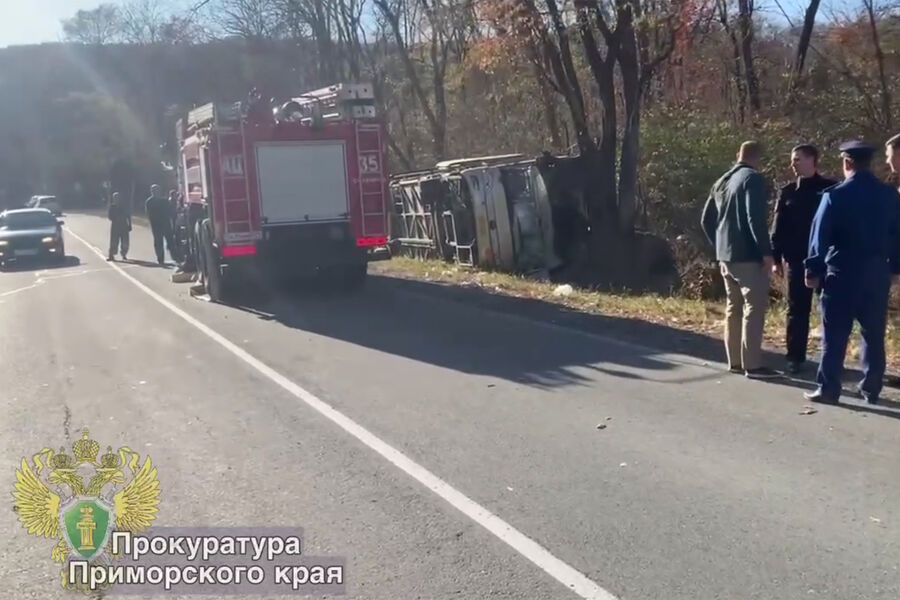 Автобус с российскими туристами следовал из Китая в Уссурийск, в салоне находились 48 пассажиров. В прокуратуре указали, что транспортное средство перевернулось из-за того, что водитель не справился с управлением и вылетел с проезжей части.