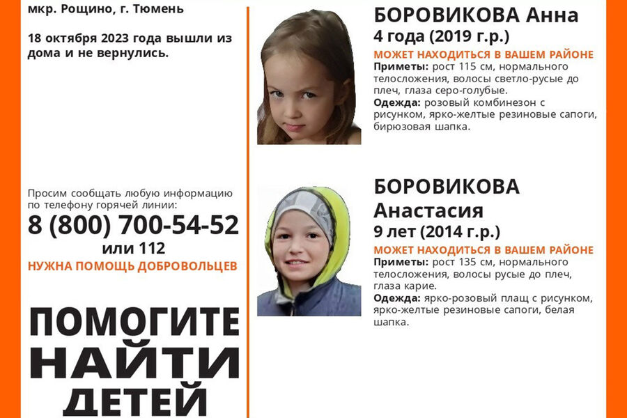 Ранее сестры в возрасте четырех и девяти лет вышли из дома и пропали. Первым их исчезновение заметил отец, который вернулся в квартиру и хотел отвезти одну из дочерей на занятия. Велосипед и беговел девочек глава семьи нашел недалеко от их дома.