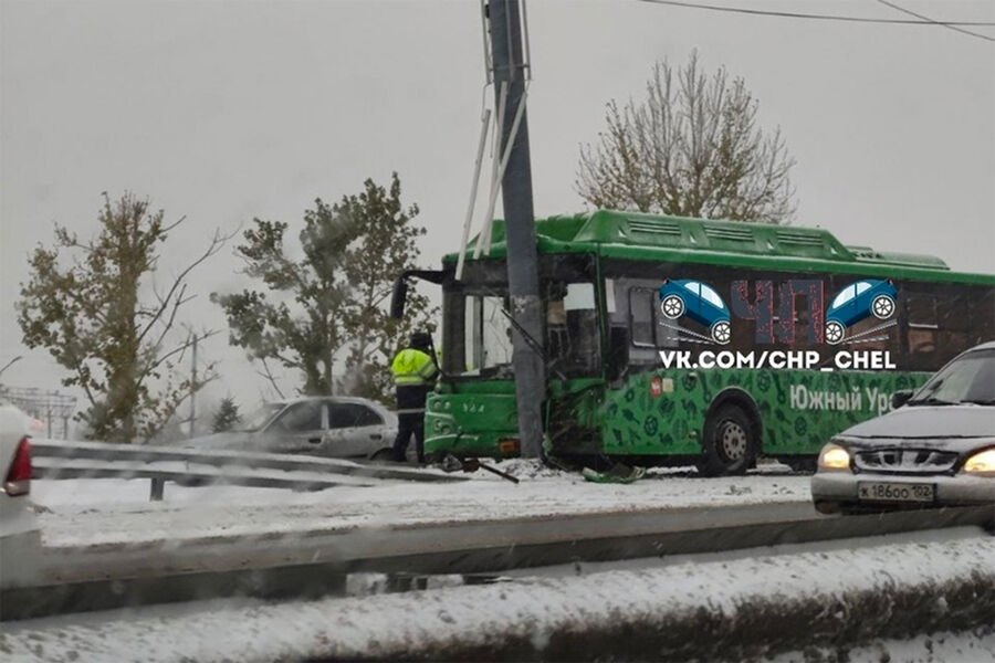 В Челябинске автобус с пассажирами влетел в столб. Об этом сообщает 74.ru.