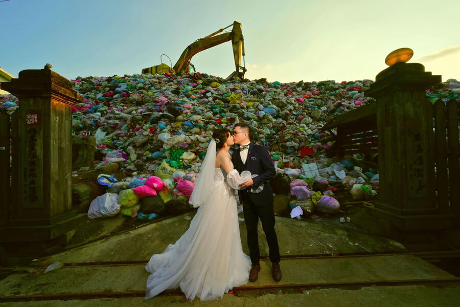 Молодожены с Тайваня устроили свадебную фотосессию на фоне горы мусора, пишет Mothership. Таким образом они хотели привлечь внимание к проблемам экологии.