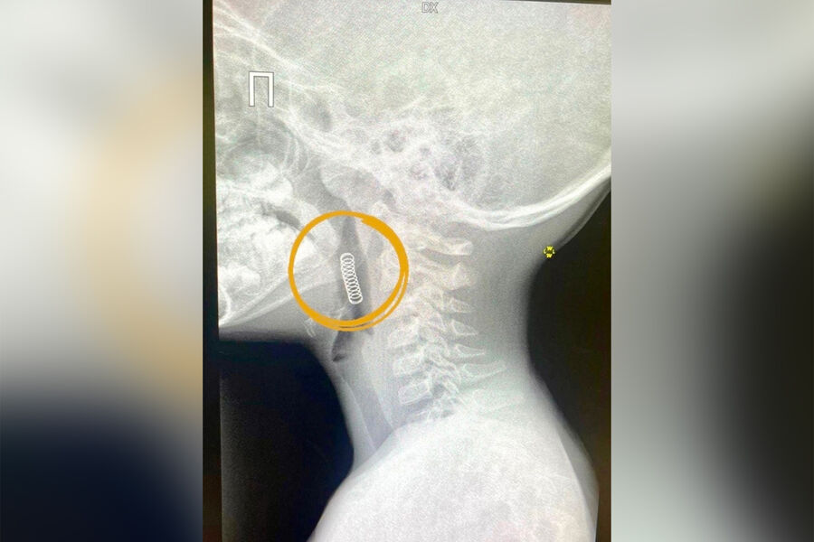 Инородный предмет застрял между надгортанником и небной миндалиной. Удалять пружинку пришлось под общим наркозом. Врачам удалось зацепить инородное тело и извлечь его. После процедуры мальчик был отпущен домой, его жизни и здоровью ничего не угрожает.