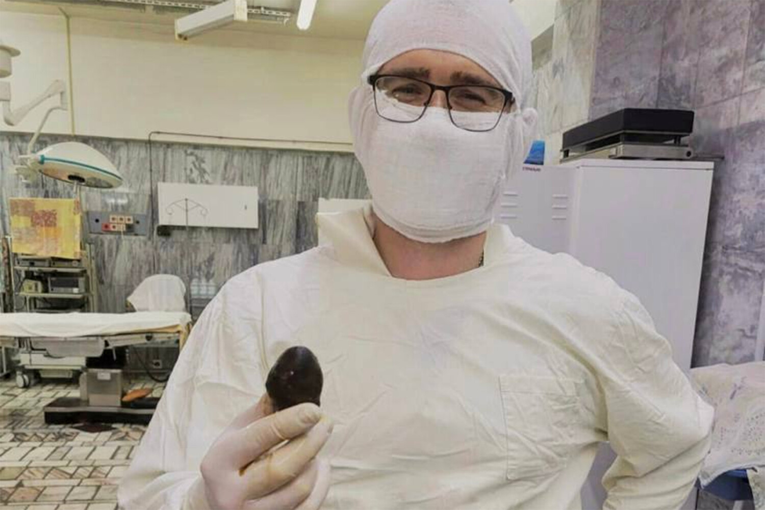 «Пациентка неоднократно испытывала приступы болей после приема жирной пищи. В удаленном желчном пузыре оказался камень около 7-8 см», — поделился хирург больницы Александр Кинзерский.