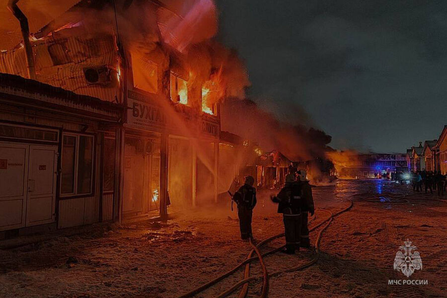 Ранее стало известно, что площадь пожара в торговых павильонах в Набережных Челнах республики Татарстан составляет почти 2,5 тысячи квадратных метров.