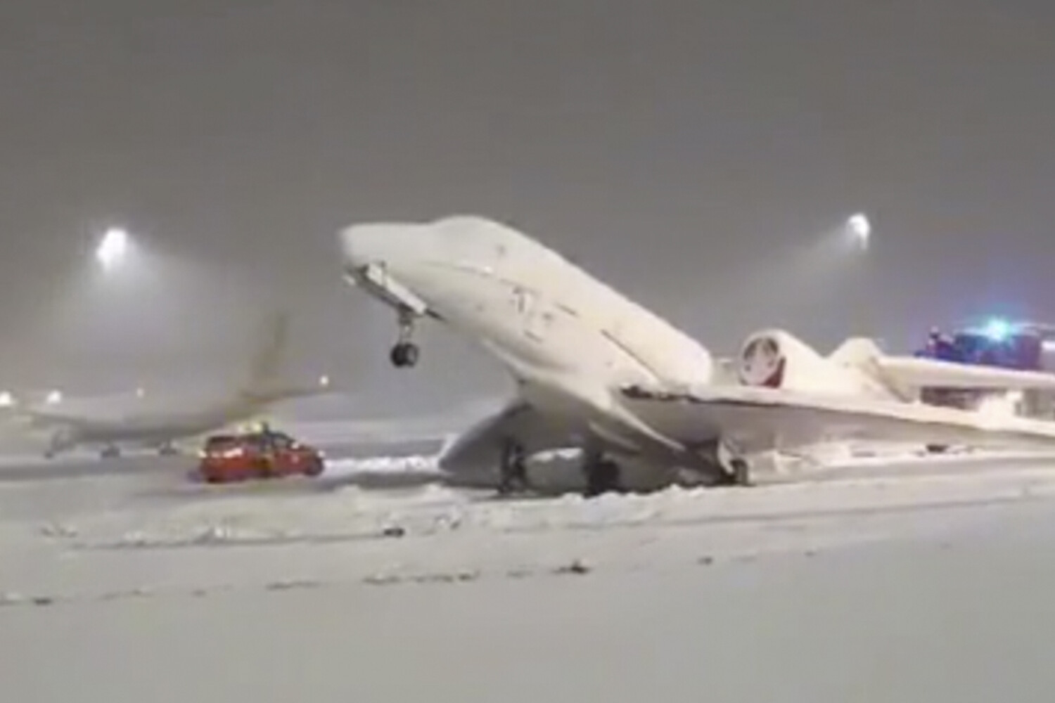 В аэропорту Мюнхена опрокинулся самолет из-за снега