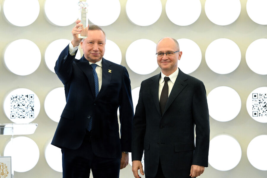 Награду губернатору Санкт-Петербурга Александру Беглову за вклад в создание уникальной экспозиции на выставке «Россия» вручил первый заместитель руководителя администрации Президента России, председатель Организационного комитета выставки Сергей Кириенко.