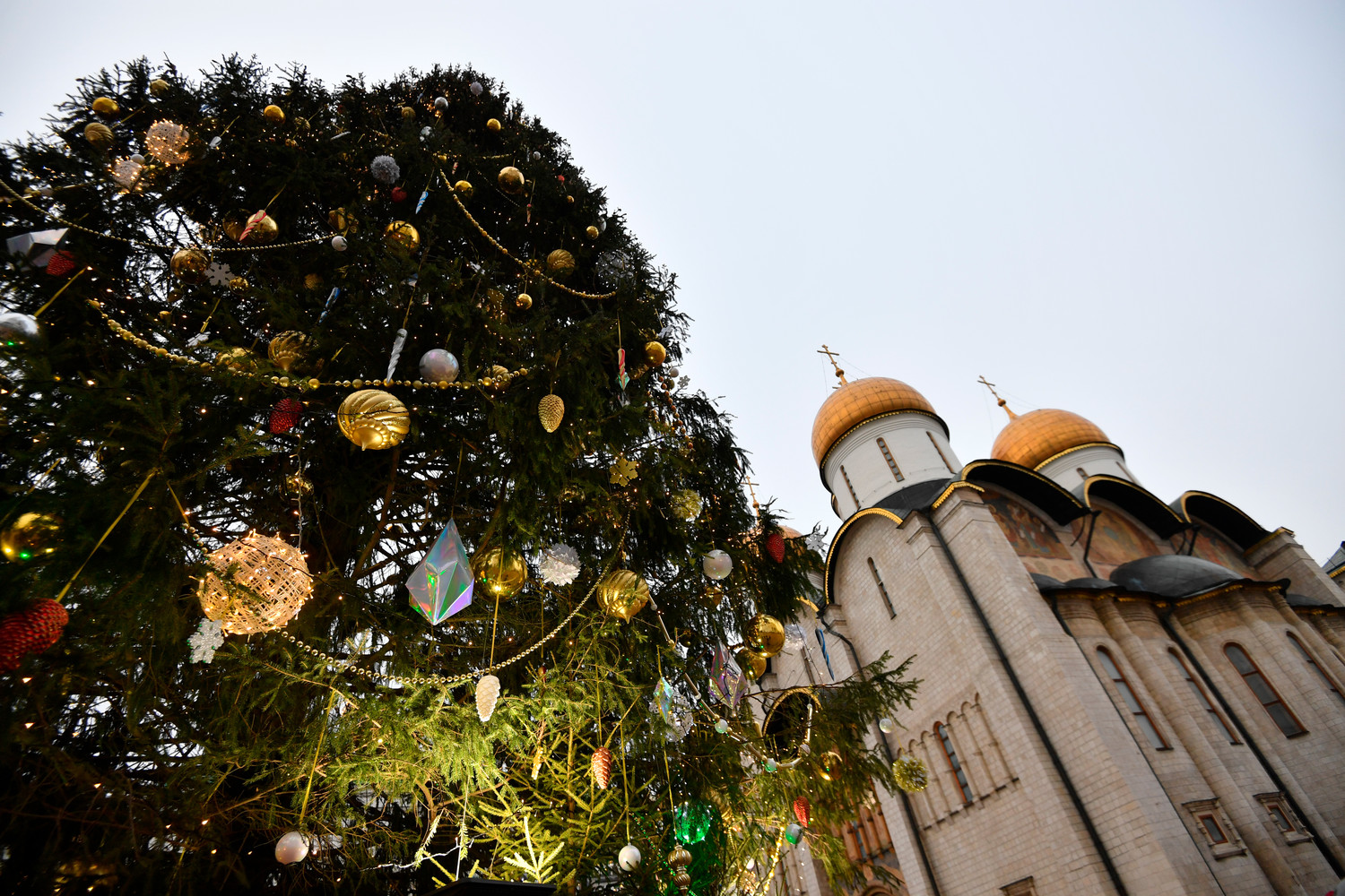 Ель для установки на Соборной площади доставили из Щелковского городского округа Подмосковья. Специальный автопоезд ввез 25-метровую лесную красавицу через Спасские ворота.