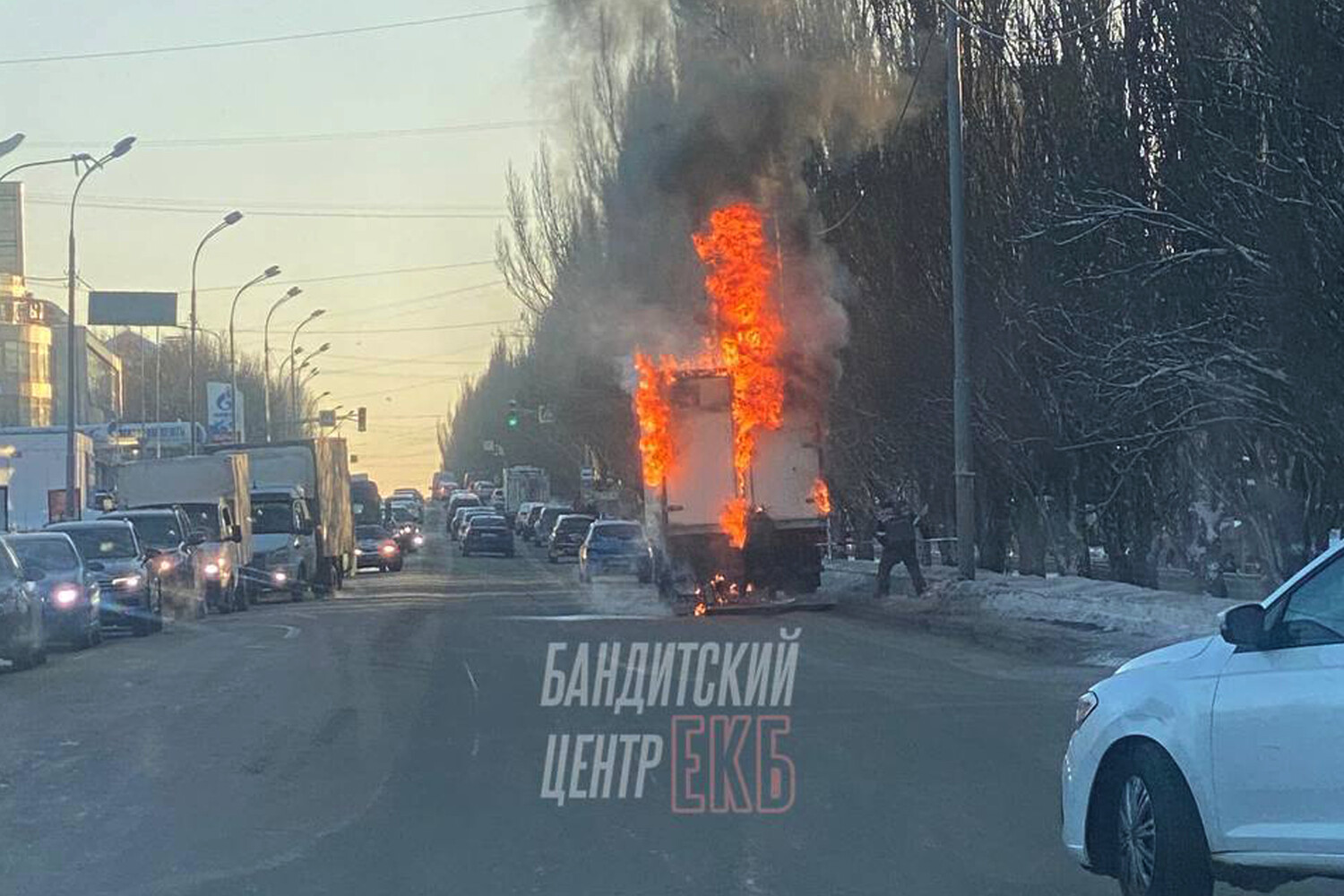 Инцидент произошел на перекрестке улиц Малышева и Восточной. Возгорание произошло во время разгрузки продуктов, которые привезли в местный магазин.