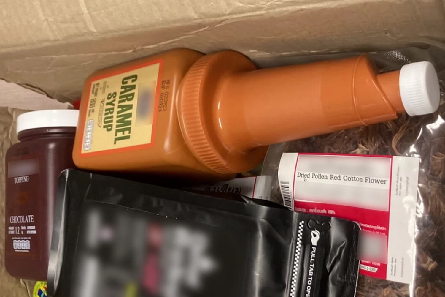 Внутри коробки, прибывшей из Таиланда, оперативники обнаружили банки из-под сладостей — шоколадного крема и карамельного сиропа — наполненные гашишным маслом. В общей сложности правоохранители изъяли наркотическое средство массой около двух килограммов.